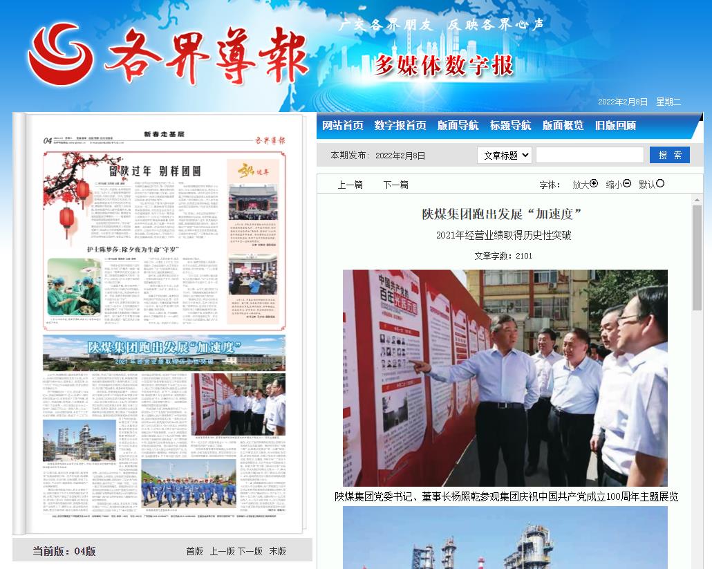 2021年,陜煤集團以提高發(fā)展質(zhì)量為中心,以深化供給側結構性改革為主線(xiàn),以科技創(chuàng )新為根本動(dòng)力,迎難而上、攻堅克難,在“十四五”開(kāi)局之年實(shí)現新突破,經(jīng)營(yíng)業(yè)績(jì)創(chuàng )歷史最好水平。