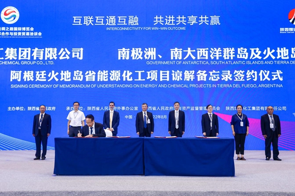 會(huì )上,阿根廷駐華大使牛望道及有關(guān)企業(yè)就阿根廷地方政府與陜西省友城結好及相關(guān)領(lǐng)域務(wù)實(shí)合作進(jìn)行推介、西咸新區就整體項目特別是足球中心與阿合作進(jìn)行交流對接。阿根廷火地島省政府與陜煤集團所屬陜西化工集團簽署關(guān)于支持在火地島省開(kāi)展能源化工項目的諒解備忘錄;陜煤集團與富海集團簽署印尼新絲路產(chǎn)業(yè)園項目框架合作協(xié)議;陜煤集團榆林化學(xué)榆東科技有限責任公司與日本宇高株式會(huì )社簽署煤炭分質(zhì)利用制化工新材料示范項目50萬(wàn)噸/年DMC工程合作協(xié)議。