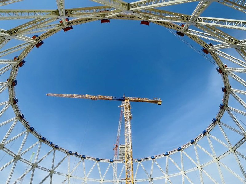 陜建機股份STC750-40A塔機助力 張掖電廠(chǎng)鋼結構間冷塔建設