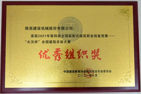 陜建機股份榮獲2021年第四屆“大漢杯”全國建筑吊裝大賽優(yōu)秀組織獎